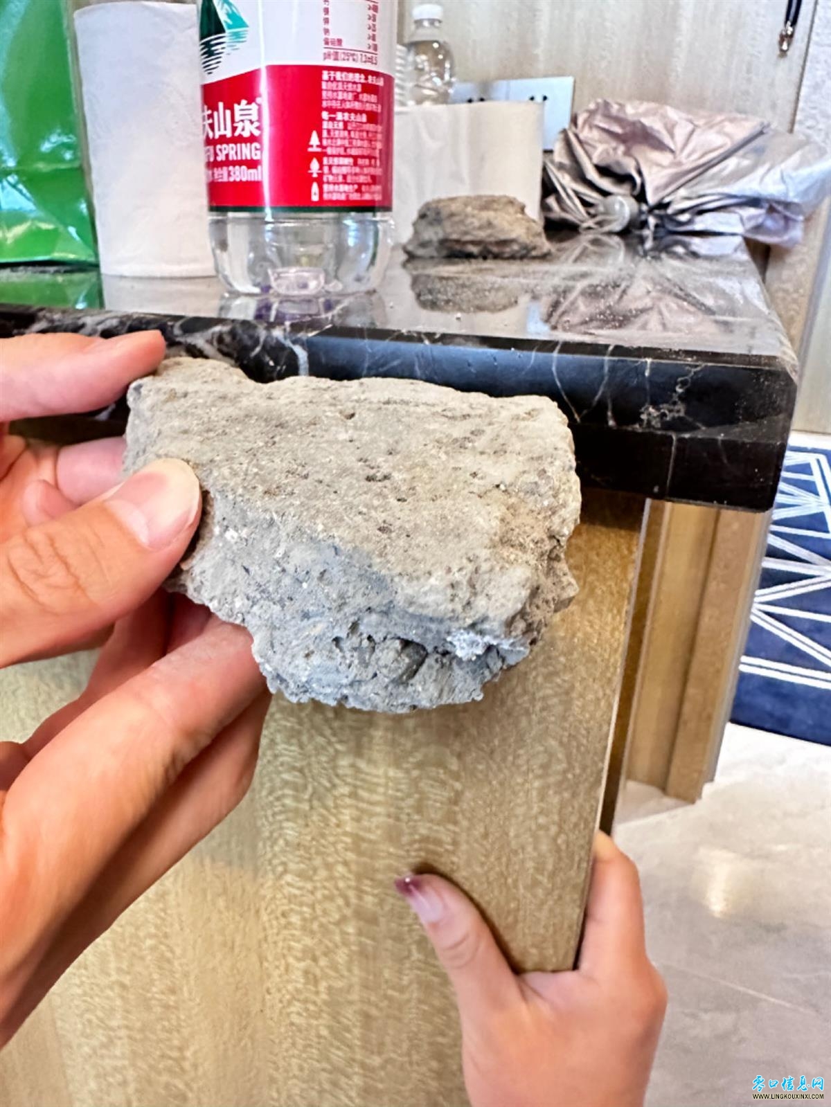 家属对比盖板水泥层的厚度(图源:受访者)