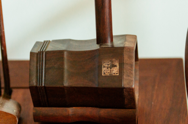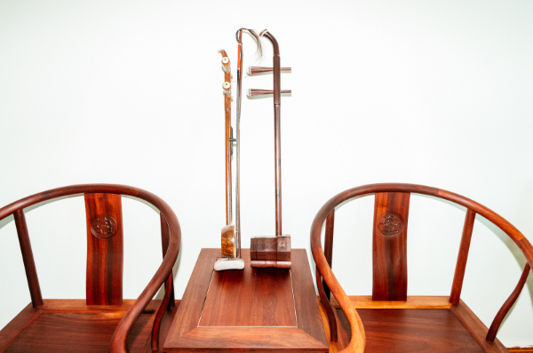 首先是按照设计的要求选料。要选择高档的红木,野生和养殖的蟒皮、紫竹和上好的马尾。