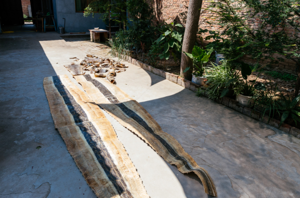 琴筒的制作:把选好的红木板材打磨找平,按照制作的样板划线、加工。胶合,在胶合好的的琴筒上划线刻花,制作音窗、琴托。蒙皮是二胡制作最关键的工艺,用蟒皮(如越南蟒皮)非常讲究,一张大蟒皮只能制作几把关中二胡。二胡的音质、音域和音色,都有蟒皮来决定。蒙皮时,先按设计大样大小在蟒皮上划线,然后剪裁、浸泡,用模具将蟒皮蒙在琴筒上。