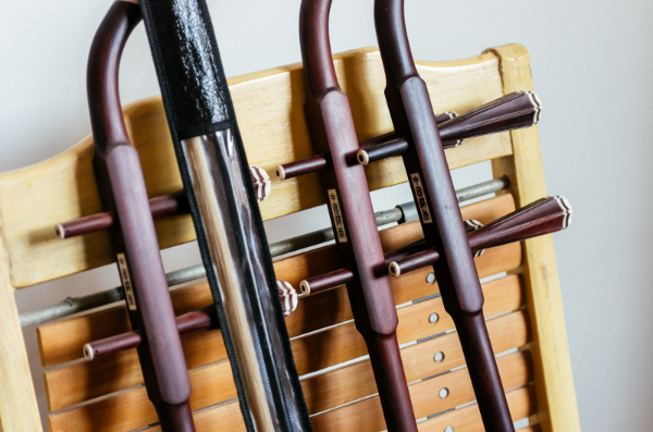 琴弓的制作:把选好的紫竹用酒精灯加热、成型。然后打孔、上弓尾,加骨片(如骆驼骨),上马尾(如新疆的马尾)。马尾做的弓弦要一根一根数过,每一根琴弓上要用520根。